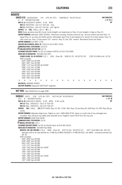 10/28/25 1441Z | | | !FDC 5/7564 DVO ODP GNOSS FLD, NOVATO, CA. TAKEOFF MINIMUMS AND (OBSTACLE) DEPARTURE PROCEDURES AMDT 2... TAKEOFF MINIMUMS: RWY 13: 400 - 2 1/4 OR STANDARD WITH MINIMUM CLIMB OF 580 FT/NM TO 500. RWY 31: 600 - 2 1/2 WITH MINIMUM CLIMB OF 285 FT/NM TO 1500 OR STANDARD WITH MINIMUM CLIMB OF 679 FT/NM TO 800 OR 2000 - 3 FOR VCOA. VISUAL CLIMB OVER AIRPORT: OBTAIN ATC APPROVAL FOR VCOA WHEN REQUESTING IFR CLEARANCE. CLIMB IN VISUAL CONDITIONS TO CROSS GNOSS FIELD AT OR ABOVE 1900 FT MSL THEN PROCEED DIRECT SGD VORTAC BEFORE PROCEEDING ON COURSE. ALL OTHER DATA REMAINS AS PUBLISHED. 2510281441-2710281441EST |