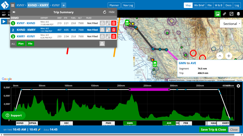 - Multi-Leg Trip Planning with Fuel Stops – Plan your entire cross-country route, including fuel stops, as a single, seamless trip.